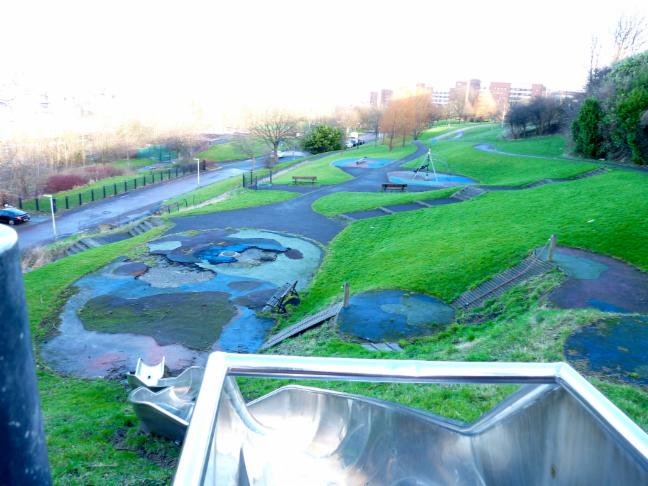 St Cuthbert's Village was a failure. Built in 1970, it was demolished 25 years later. The above conventional, albeit, steep street could have been gutted inside and modernised for far less cost and a significantly better result. The Victorians built streets like this so that water would run away. Houses built across the hill, early on, often lead to water ingress...the houses damning the flow of water downhill. This, with modern drainage and building methods, is no longer a problem