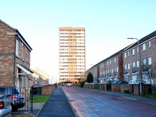 Now, the tall tower block remains but the lower storeyed blocks of flats and walkways replaced by modern private houses on conventional streets